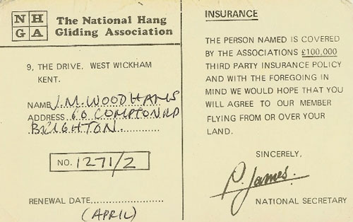 This is the 'National Hang Gliding Associations' membership card that was issued to Mark Woodhams