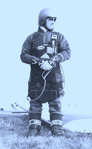 Johnny Carr is another of Britain's main early hang gliding pioneers, and has to be truly remembered as one of our main Characters in the sport. He was always larking around and a very funny guy. Whenever his name comes up I can’t help remembering the time when a handful of flyers from suffolk including myself visited Devils Dyke for a good days flying. At that time I was flying my recently purchased Birdman Cherokee. While I was rigging up to fly Johnny was hovering quite low and just above me singing "Three wheels on my wagon, and I'm just rolling along, the 'Cherokee's' are after me, but I'm singing my happy song". That was Johnny Carr at his best.