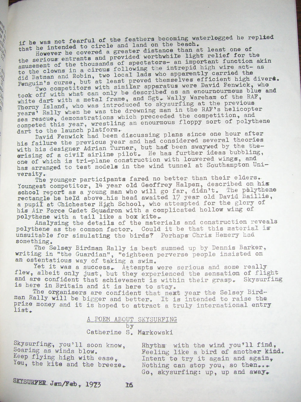 An article and photos were also published in the 'Sky Surfer' magazine (USA)