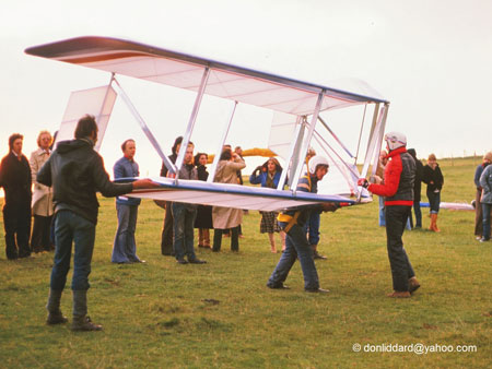 Johnny about to take off flying an Easy Riser at Devils Dyke 1978