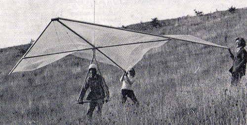 This is the first photo of a Hang Glider in the UK with a king post. It was not until 1974 that Geoff McBroom made a public recommendation that all hang gliders should have a King Post.