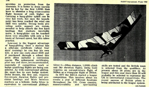 The following is an article by Ian Parker that appeared in 'Flight International' Magazine 19th July 1980, on the growth of Hang Gliding in the UK.